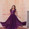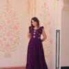 Women’s Elegant Plum Purple Georgette Anarkali Gown with Butterfly Applique & Ruffle Sleeves – Festive & Special Occasion Wear