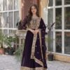 Be the first to review “Women’s Luxurious Plum Velvet Anarkali Gown with Heavy Gold Zari & Sequin Embroidery – Perfect for Weddings & Grand Festivities” Cancel reply